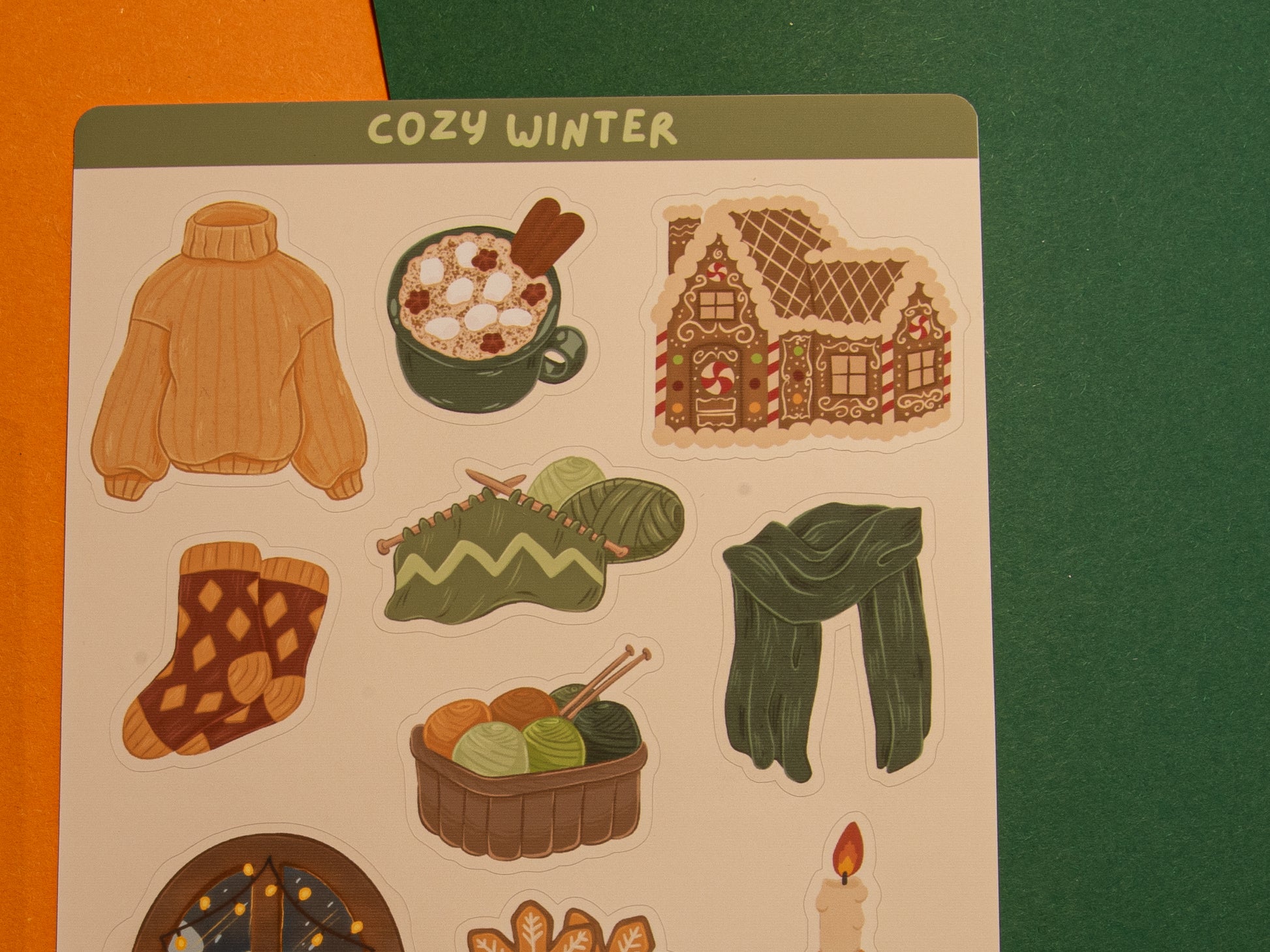This cozy winter themed sticker sheet includes illustrations of yarn and knitwork, books and gifts, a deliciously decorated gingerbread house, a lovely window scene, and more. Cuddle up and grab your crafts or read a nice book after you've decorated your planner, scrapbook or notebook with these beautiful stickers. They will add a whimsical touch to your pages, making you long for those cozy winter nights when you look back!
