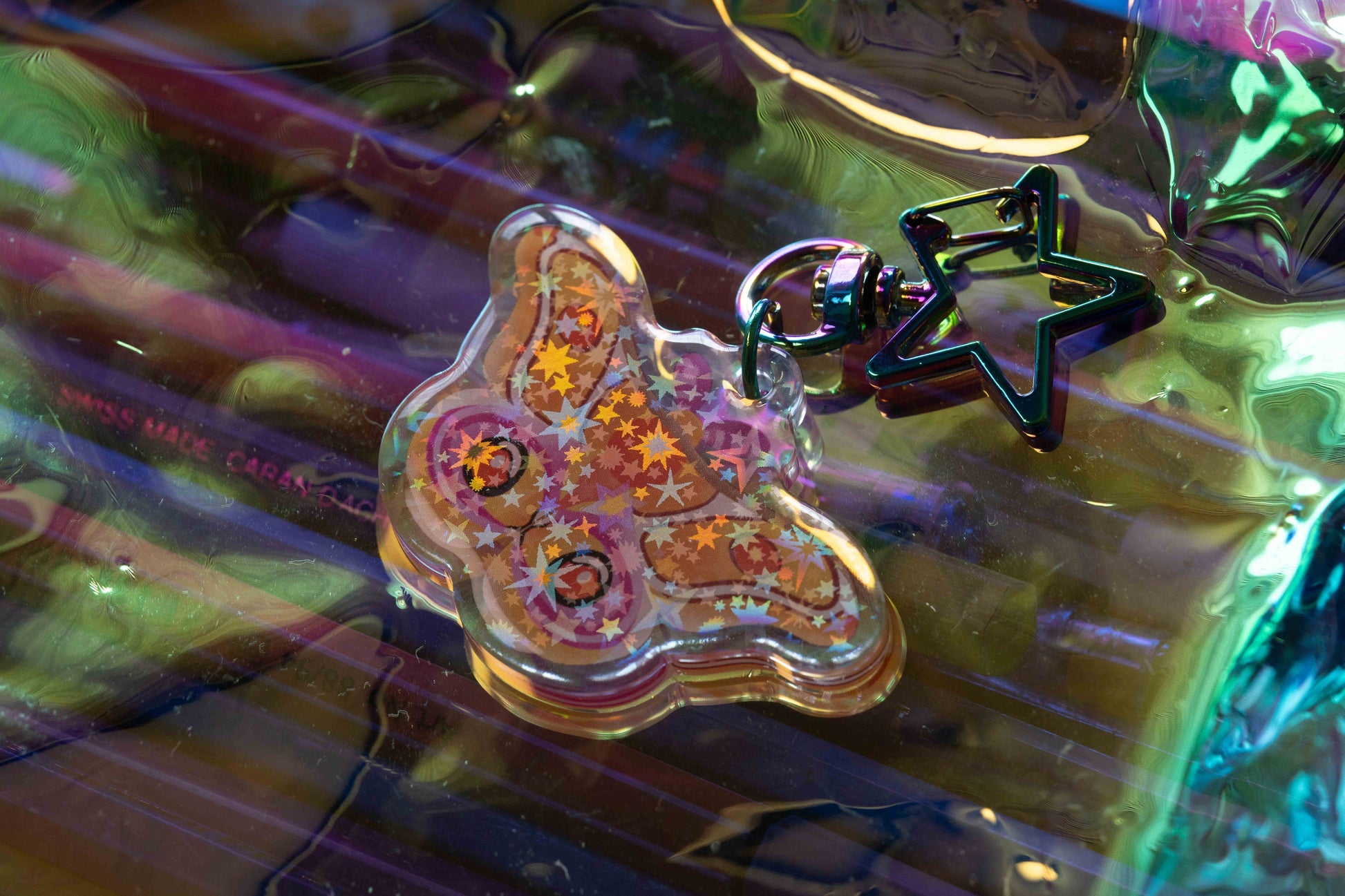 This gorgeous moth design is part of a collection of moth illustrations that have taken form of stickers as well as keychains. Let joy be sparked with each shimmer of the star holo!